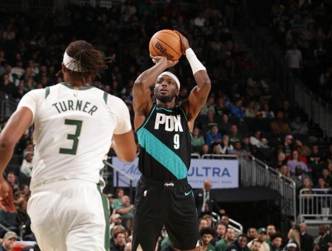 喧宾夺主,开拓者下起三分雨,淹没雄鹿队,杨瀚森无机会登场