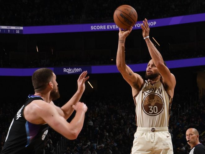 4连败!勇士17分大胜爵士,库里一战创NBA三大神迹,乔治空砍28+7