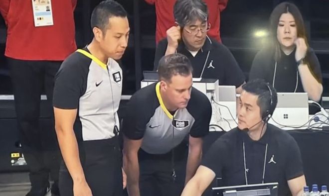 比赛仅剩50多秒时,中国队已经领先10分,比赛基本失去悬念,但三名裁判联手“接管”比赛,连续做出争议吹罚,导致比赛支离破碎,并且都是对中国队不利,好在日本队在裁判的偏袒之下未能实现翻盘。还有最后时刻日本队接球时,从后场到运过前场,技术台没有开表,试图帮助日本队改命却仍然失败。