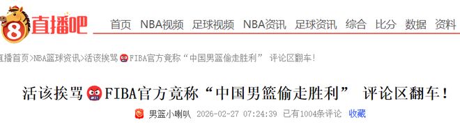 与此同时,国际篮联也有惹巨大争议的行为,就是在官方报道比赛时,出现离谱的用词不当,配文写道:“中国男篮从日本偷走一场胜利(China with a sneaky win over Japan )”,用在这里也可以翻译为,“侥幸的”或者调侃式“偷走”的意思。